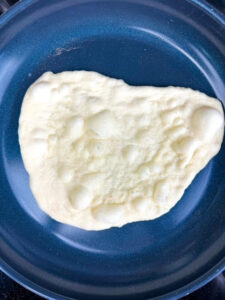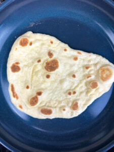 Heat a cast iron skillet or frying pan on medium/high heat, do not add oil! Cook each naan bread for about 4 minutes. Once you notice it bubbling and puffing up, flip and cook for 2 minutes on opposite side.