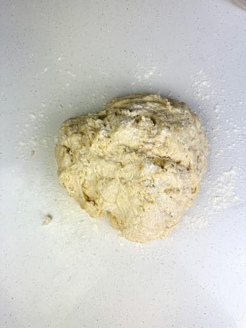 Stir all the ingredients together until it becomes to hard to mix. Transfer your dough to a lightly floured surface and begin kneading by hand until the ball of dough is smooth. (About 1-2 minutes) Adding more flour if its to sticky to knead.